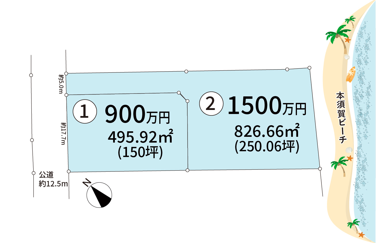 | 土地面積 | ①実測495.92㎡(150坪) ②実測826.66㎡(250.06坪) |